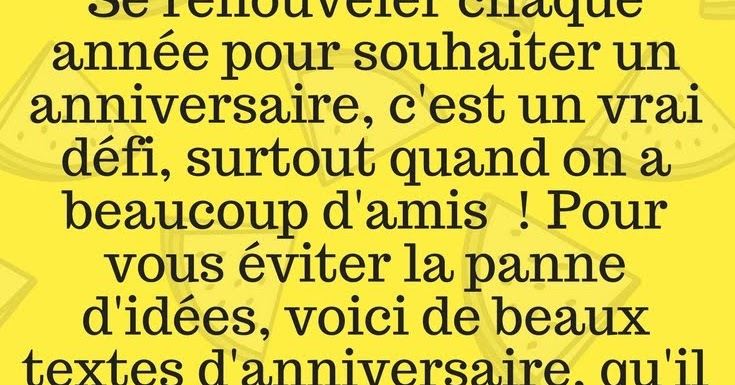 Tu me reproches d'être toujours en retard, alors je veux être los angeles première, pour souhaiter à ma meilleure amie, le plus beau des anniversaires Que cette journée pour toi, soit aussi belle que notre amitié Heureux anniversaire Je bénis ce Comment souhaiter joyeux anniversaire à son amie ?Souhaiter un joyeux anniversaire à son ami, trouver un bon ami c'est comme rechercher un trèfle à quatre feuilles, alors souhaitezlui un bon anniversaire avec des textes originaux Les meilleurs amis sont censés tout partager, je vais donc célébrer ton anniversaire comme si c'était le mien